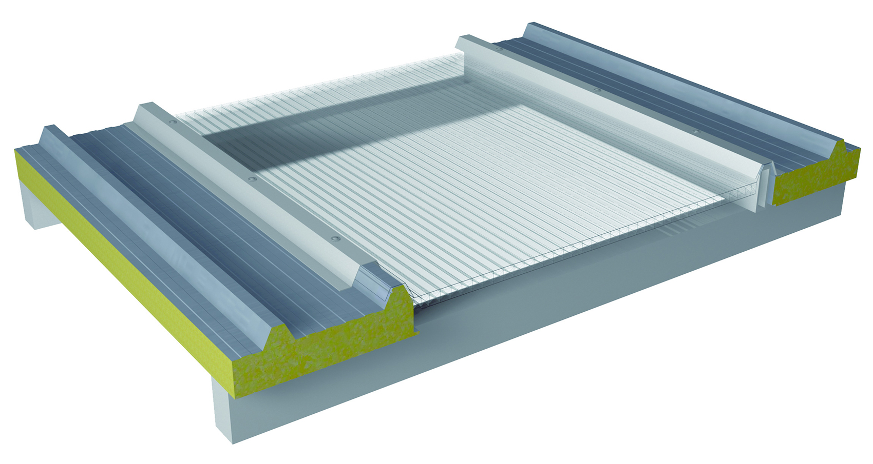 Painéis com estrutura alveolar reforçada, e geometria adequada para aplicação em coberturas industriais com painel metalico sandwich, ou em coberturas contínuas translúcidas.